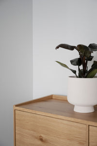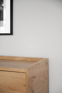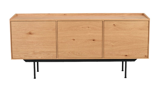 Brewerton sideboard in lacquered wild oak. All cabinet doors are opened using push-open and the entire front comes from the same plank in the tree, which gives you a stylish overall impression.
