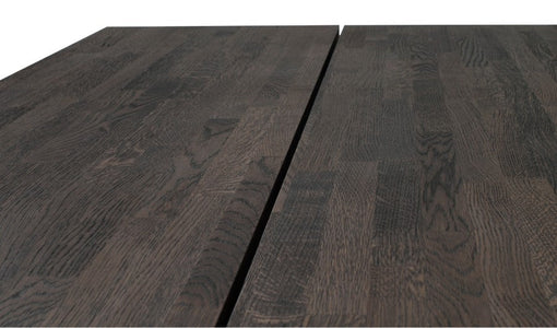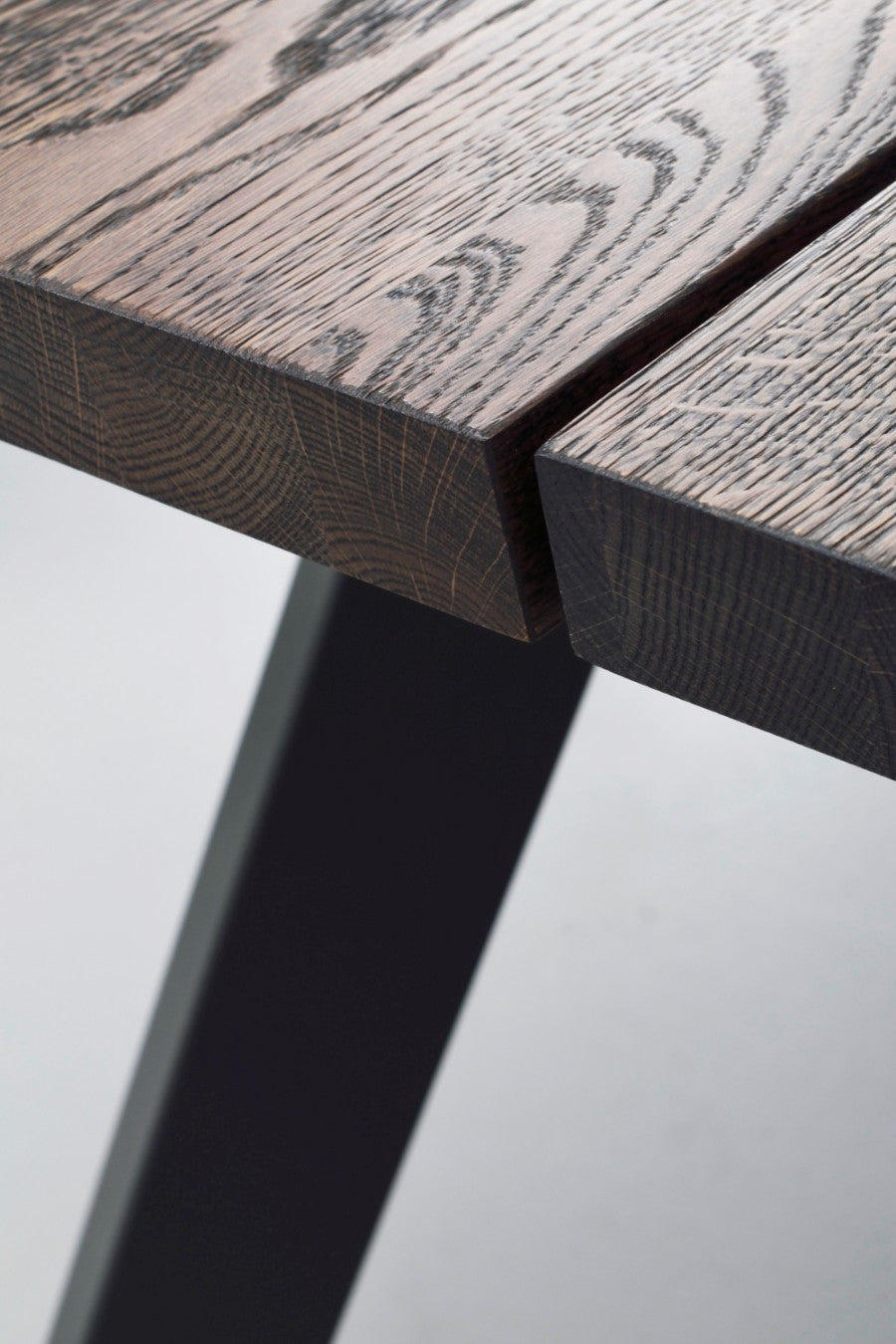 Esstisch mit geteilter Platte aus massiver Eiche.
