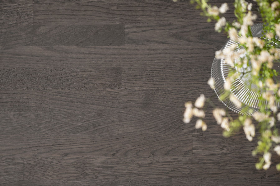 - Eiche massiv gebürstet gebeizt lackiert, Beine aus lackiertem Stahl