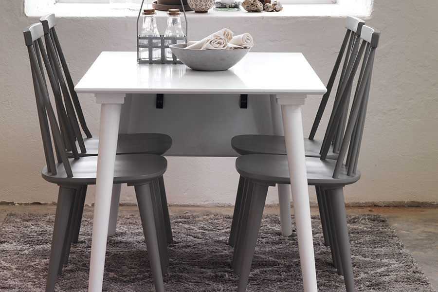 LOTTA weißer Drop-Leaf-Esstisch und -Stühle