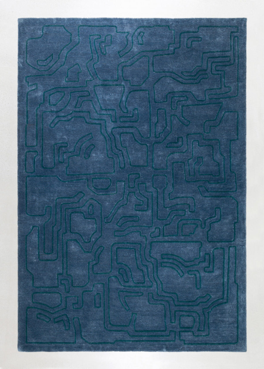 Die neue Serie luxuriöser Teppiche von OEO Studio für massimo hat einen ausgesprochen grafischen Charakter. Das Bild – oder der Signifikant – ist schließlich das besondere Vermächtnis der Anwesenheit des Menschen auf der Erde durch Jahrtausende. Handgetuftet aus neuseeländischer Wolle und Bambusfaser. Entworfen für Massimo von OEO Studio.