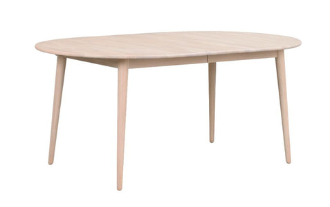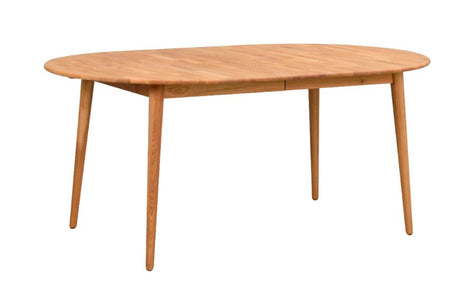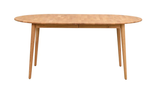 Ein skandinavischer Esstisch aus keilverzinkter massiver Eiche. Der Tisch verfügt über eine Verlängerungsplatte, sodass Sie Ihren Tisch problemlos erweitern können. Es ist auch möglich, eine zusätzliche Einlage von 40 cm zu kaufen.